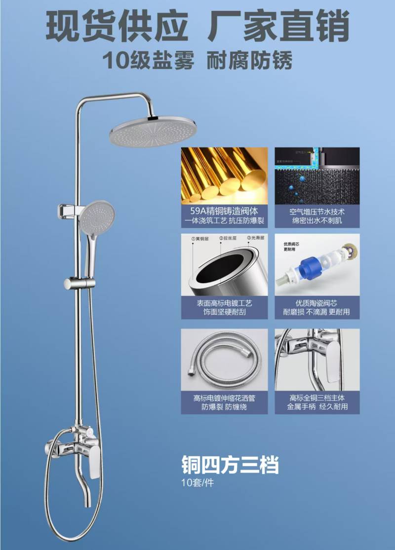 河北卫浴工厂直营批发 铜电镀小四方花洒85元/件,水龙头7元起