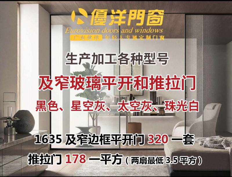 优洋名门门窗加工厂主营:生产加工各种型号及窄玻璃平开和推拉门