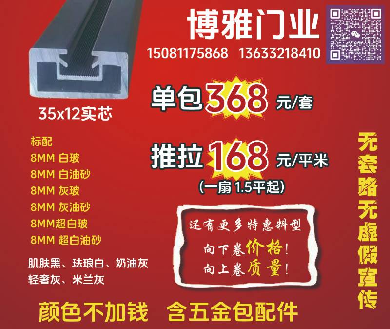 博雅宝莱门业主营:钛镁合金门窗,推拉门,平开门,颜色不加钱含五金包配件