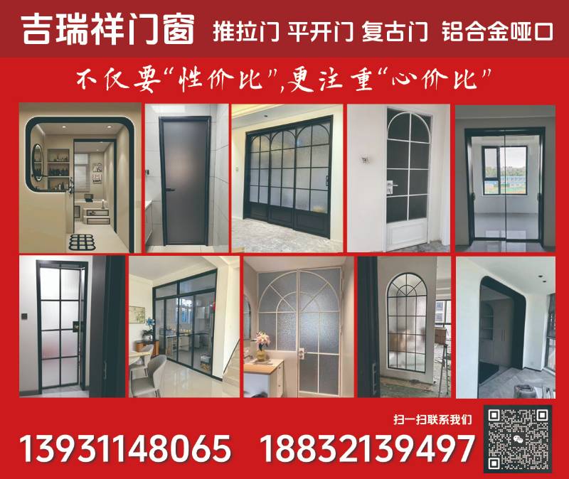 吉瑞祥门窗厂主营:推拉门 平开门 复古门 铝合金哑口,不仅要性价比,更注重心价比