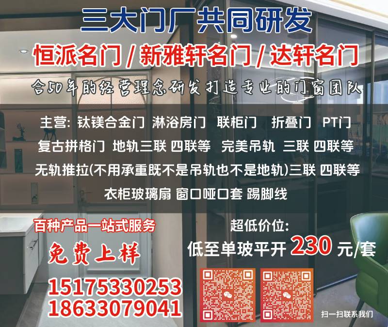 正定新奥门窗主营:钛镁合金门、 钛镁合金推拉门、钛镁合金折叠门、不锈钢/铁艺屏风、钛镁合金平开门、淋浴房、橱柜门、钛镁合金极简玻璃门衣柜酒柜。
