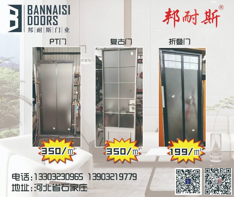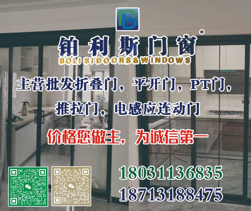 铂利斯门业主营:主营批发折叠门,平开门,PT门,推拉门,电感应连动门铂利斯门窗是一家集铝合金装饰门开发,生产,销售能为一体的综合性企业