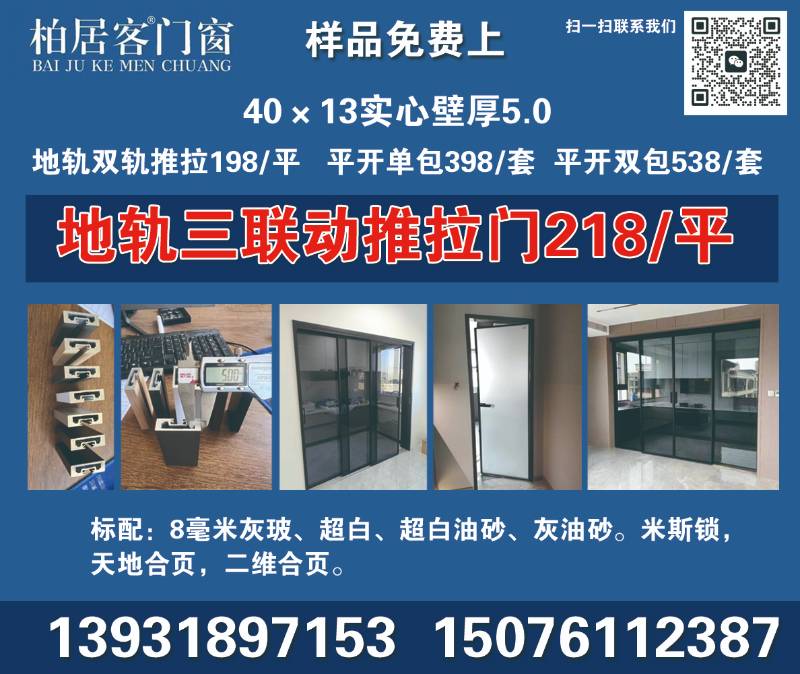 柏居客门窗主营:钛镁合金门,推拉门,平开门,复古门,地轨三联动推拉门218/平