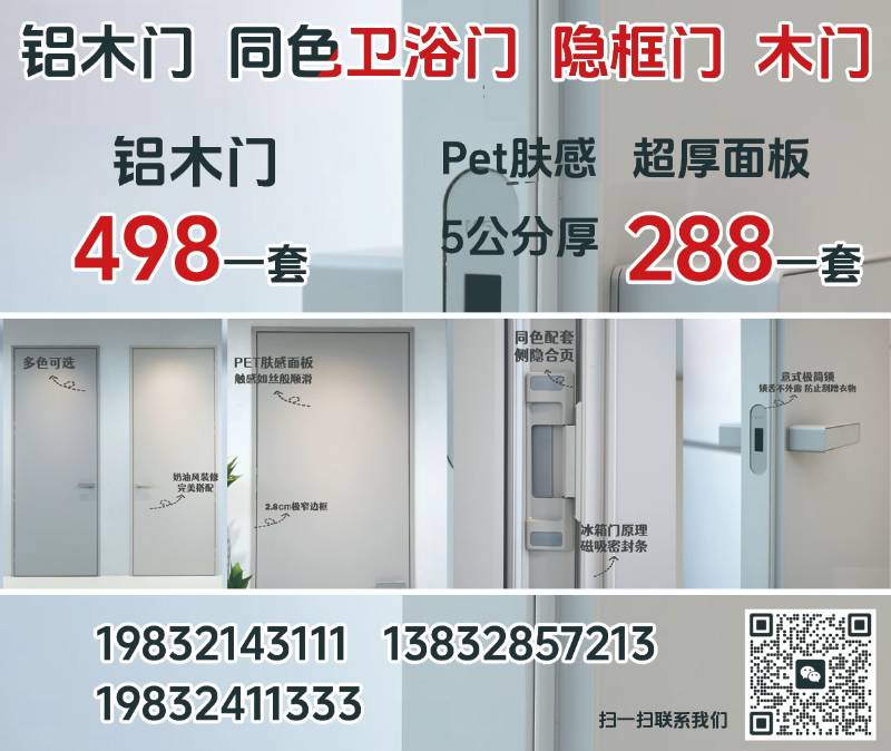 简美之间主营:铝木门 同色卫浴门 隐框门 木门