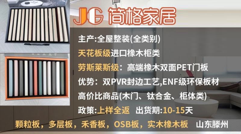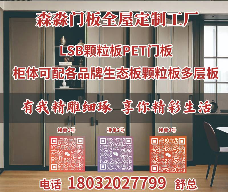 森淼门板全屋定制主营:金屋定制工厂LSB颗粒板PET门板,柜体可配各品牌生态板颗粒板多层板