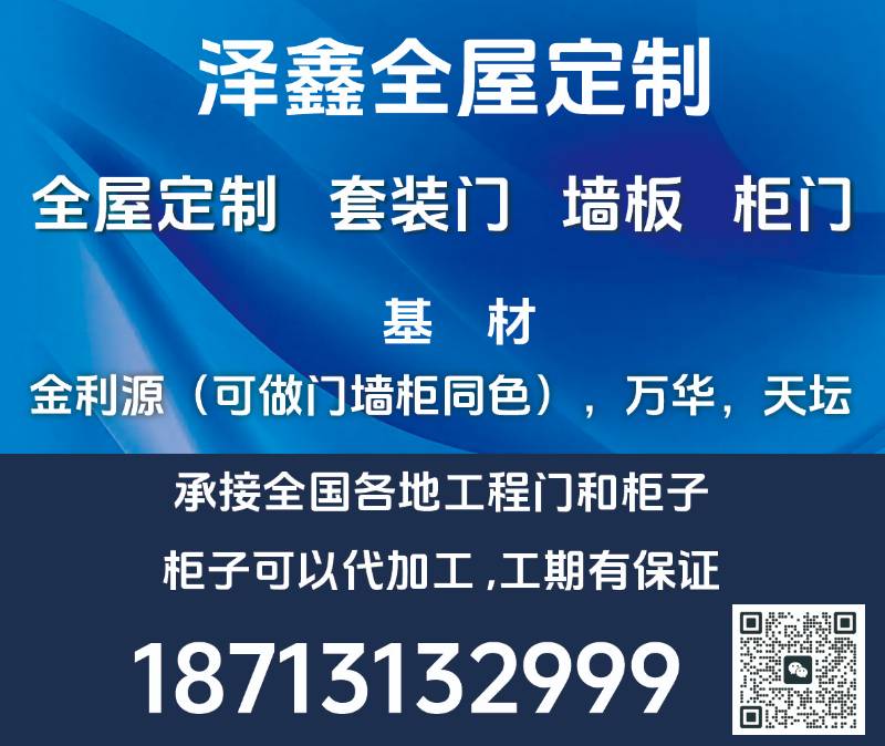 泽鑫全屋定制主营:全屋定制 套装门 墙板 柜门 基材 金利源(可做门墙柜同色),万华,天坛