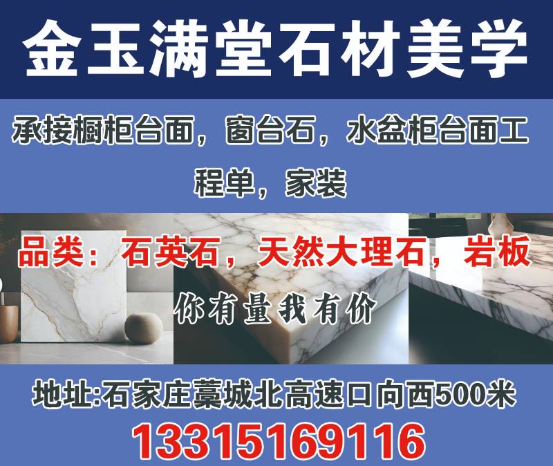 金玉满堂石材美学主营:橱柜台面,窗台石,水盆柜台面工 程单,家装 石英石,天然大理石,岩板