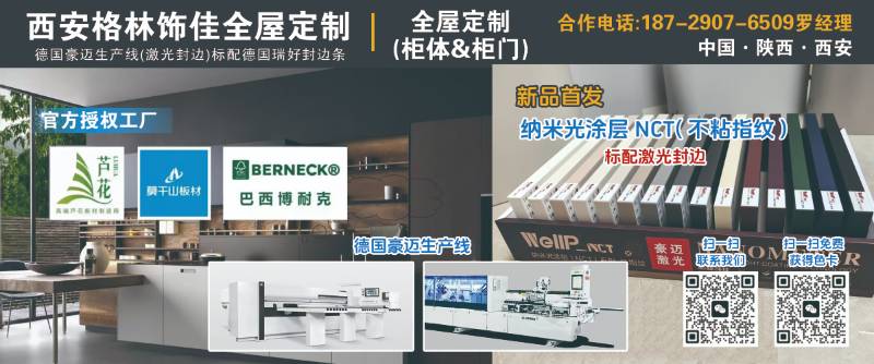 西安格林饰佳全屋定制主营:纳米光涂层NCT(不粘指纹) 芦花 标配激光封边