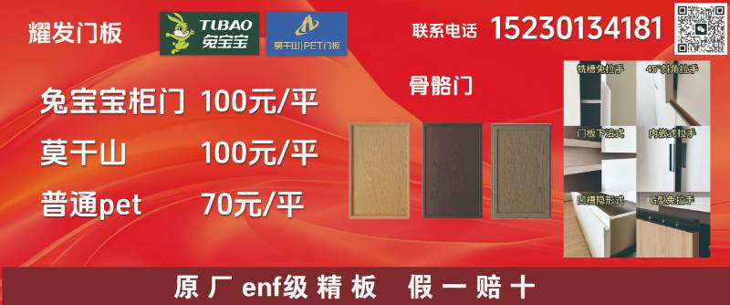耀发门板主营:兔宝宝柜门 莫干山 普通pet 骨骼门 原厂enf级精板