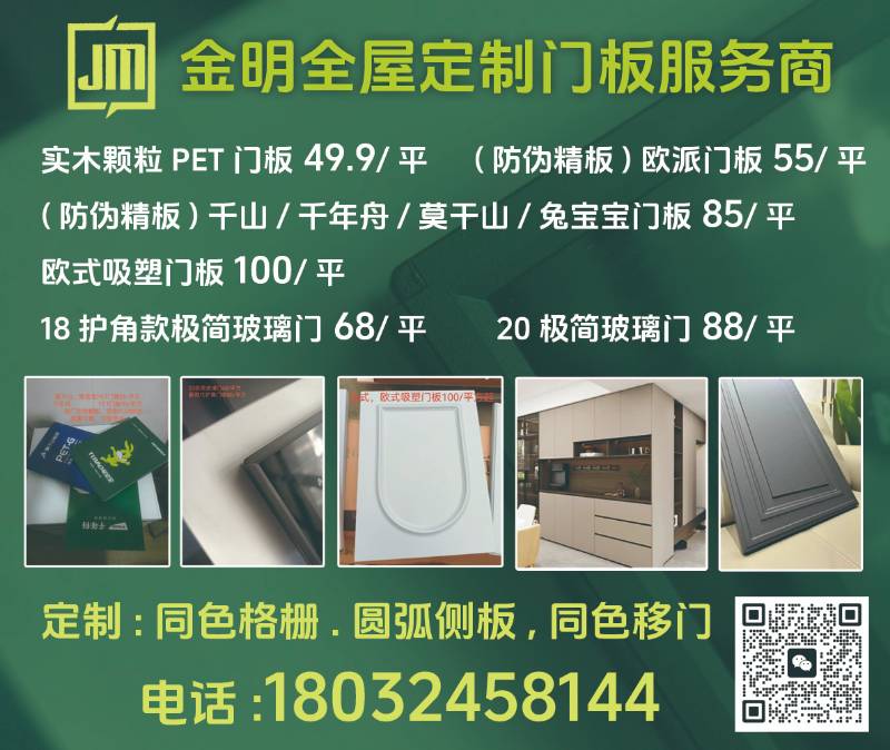 金明全屋定制门板主营:同色格栅.圆弧侧板,同色移门 实木颗粒PET门板 (防伪精板)欧派门板 千山/千年舟/莫干山/兔宝宝门板