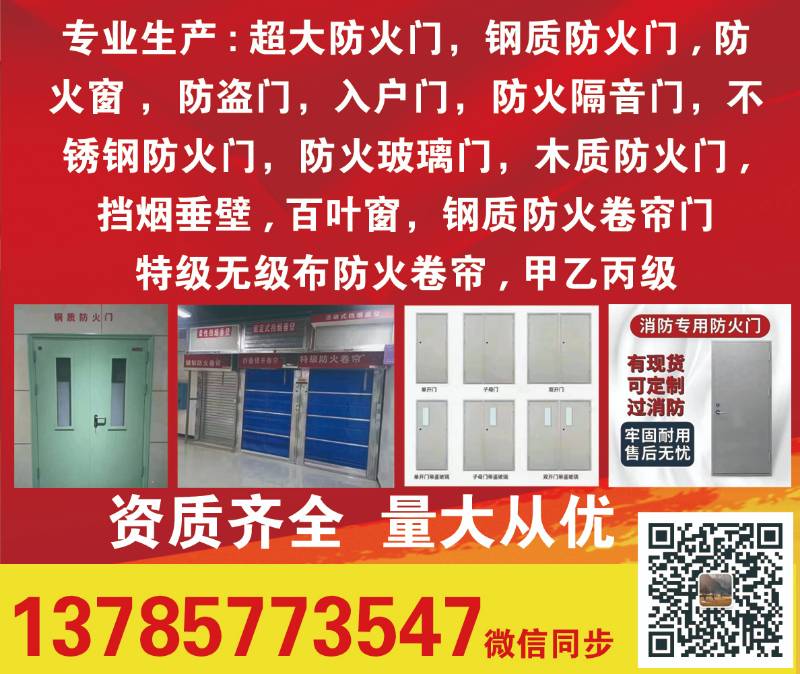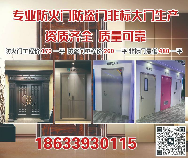 专业防火门防盗门非标大门生产主营:专业防火门防盗门非标大门生产资质齐全质量可靠,防火门工程价170一平,防盗门工程价260一平,非标门最低480一平