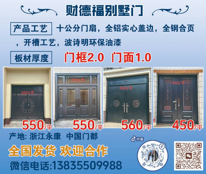 浙江永康财德福门业主营:别墅门 防盗门 防火门