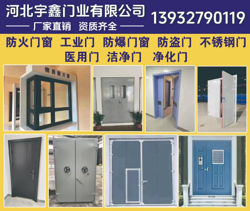 河北宇鑫门业有限公司主营:防火门窗 工业门 防爆门窗 防盗门 不锈钢门 医用门 洁净门 净化门