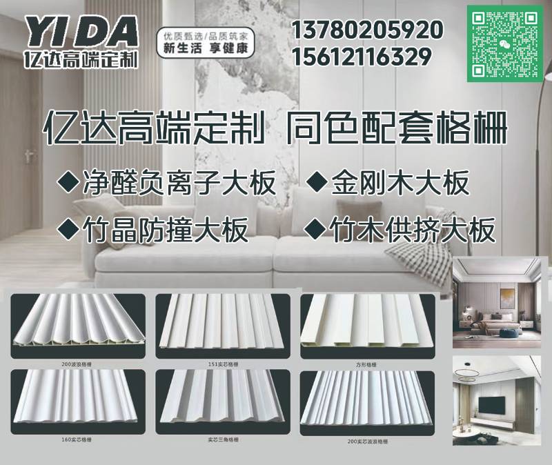 亿达装饰主营:高端定制同色配套格栅,净醛负离子大板,金刚木大板,竹晶防撞大板 竹木供挤犬板