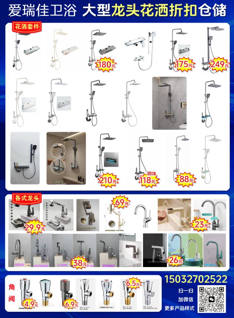 心意卫浴山西营销中心主营:花洒、龙头、五金配件、水暖管道零件、马桶、浴缸