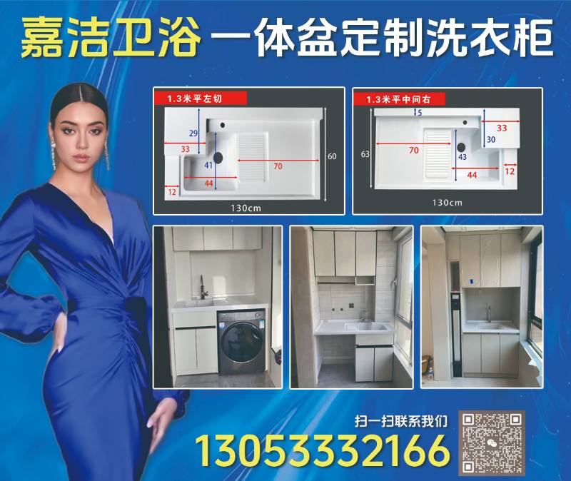嘉洁卫浴主营:一体盆定制洗衣柜