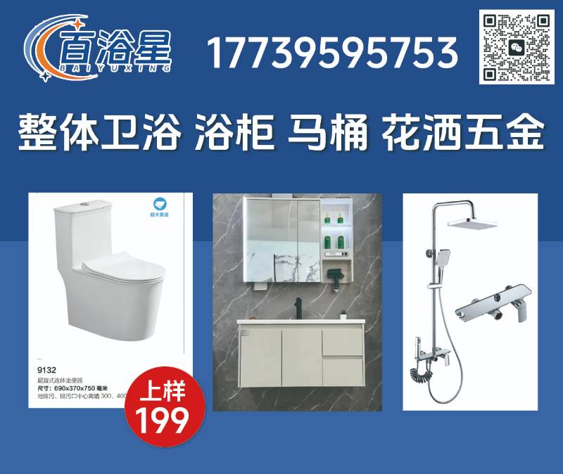 百浴星卫浴主营:整体卫浴 浴柜 马桶 花洒五金